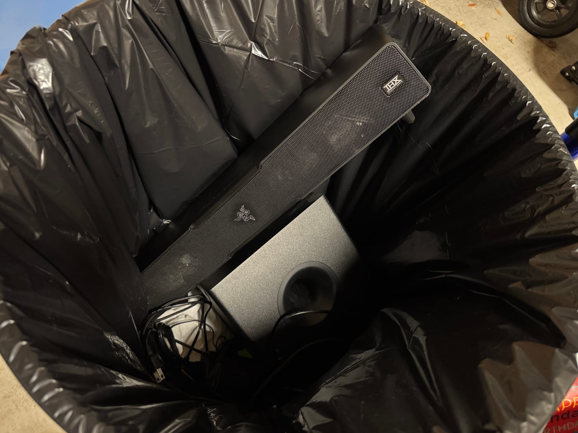 If you're in the market for a nice soundbar to shove beneath your monitor to keep things nice and tidy, may I recommend you stay the hell away from the Razer Leviathan. Yes, it sounds fine. Yes, it has pretty colors that dance along to the music. But where it falls down, and this is thoroughly documented on the internet, is when you unplug it, for example, to reroute the wires. Once you plug it back in, Windows won't see it anymore. Then you'll head to Google to figure it out, and guess what, there goes your Saturday.