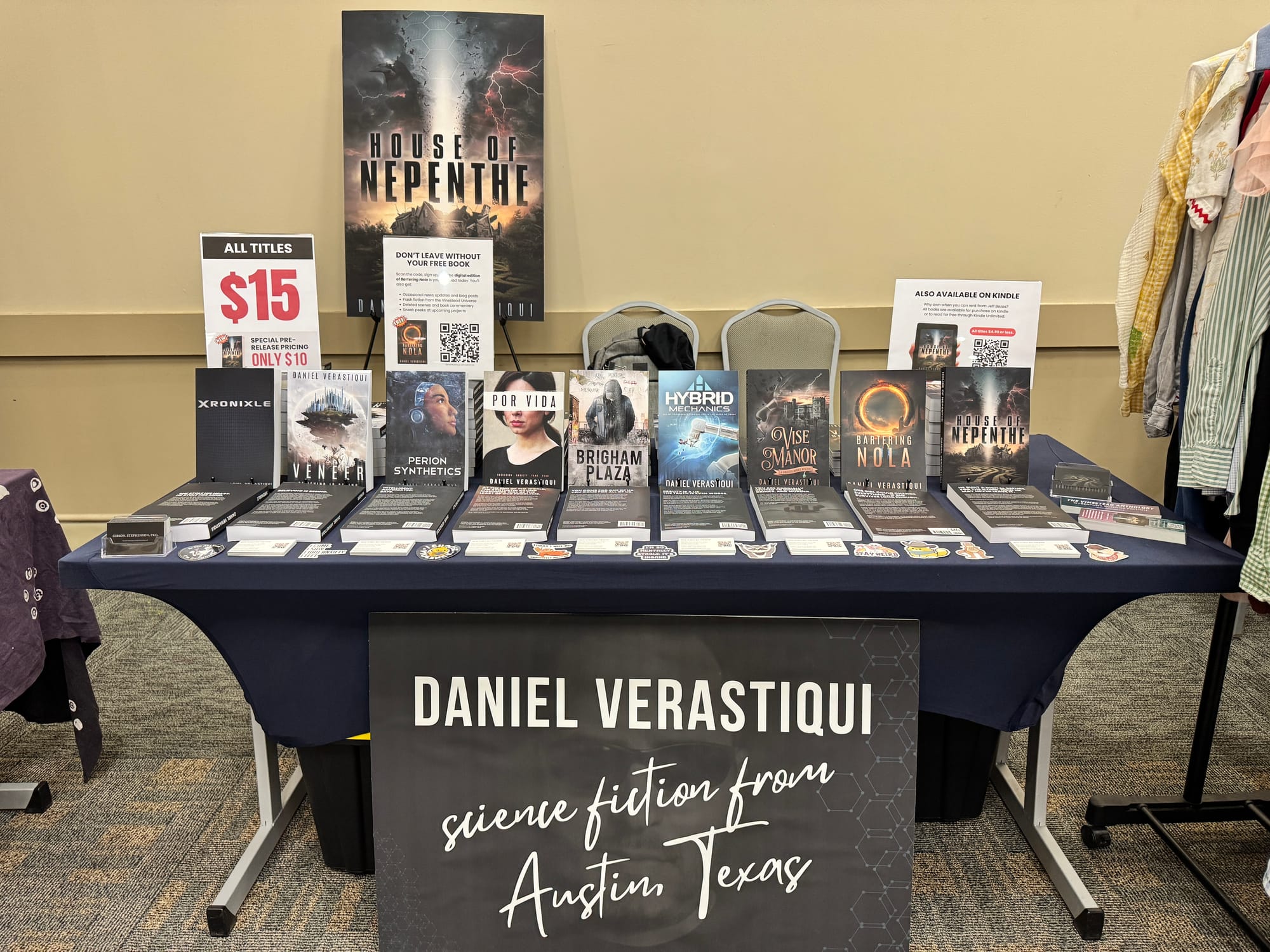 When it comes to final numbers, I sold about half of the inventory I brought, which was a lot higher than the single copy I was hoping for. Not only that, I gained invaluable experience talking directly to people reading science fiction, and those conversations will not only inform the signage at my next in-person event, but also the marketing efforts I'll be making to launch House of Nepenthe in June. It's completely possible I never really understood how to sell books to people. And now... an improvement, however slight, is still an improvement.