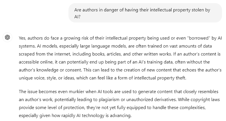 In today's rapidly evolving World Wide Web, protecting intellectual property has become more challenging–and more important–than ever, especially for authors. Generative AI is promising to write your resume, respond to your emails, and help you come up with an assortment of social media posts that are sure to go viral on Threads, but where and how did ChatGPT learn to do that? Did it scour the web for publicly available text so it could learn how we write? That's quite the accusation, so I'll just put it this way: it is possible some bad generative AI actors are out there training LLMs on text they ought not be training it on.