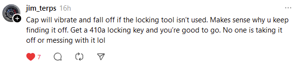 The two prevailing theories are equally plausible in my mind: either someone is removing the cap for nefarious reasons, or the cap is just vibrating right off this 10-year-old AC unit.