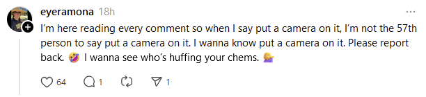 Little did eyeramona know, I had set up a camera already. I've been playing with these Eufy cameras since Prime Day as a way to get around Google Nest's yearly subscription fees, so I had an extra one sitting on my desk. Ten minutes later, and we're ready to catch the culprit (or restless spirit) in the act! Or we could watch nothing happen as the cap falls off out of sight. Either is fine.
