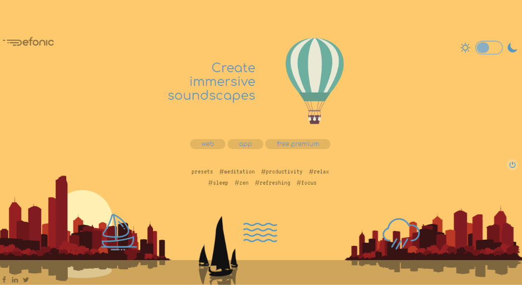 If you're ever trying to set the mood and need some background noise, be sure to check out Defonic. I use it primarily for rain, thunder, and wind sounds, but it has coffee shops and beaches and wilderness. Surround yourself in the sounds of the scene you're trying to write... it can really help get you in the mood.